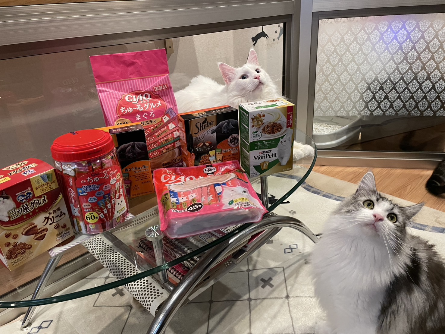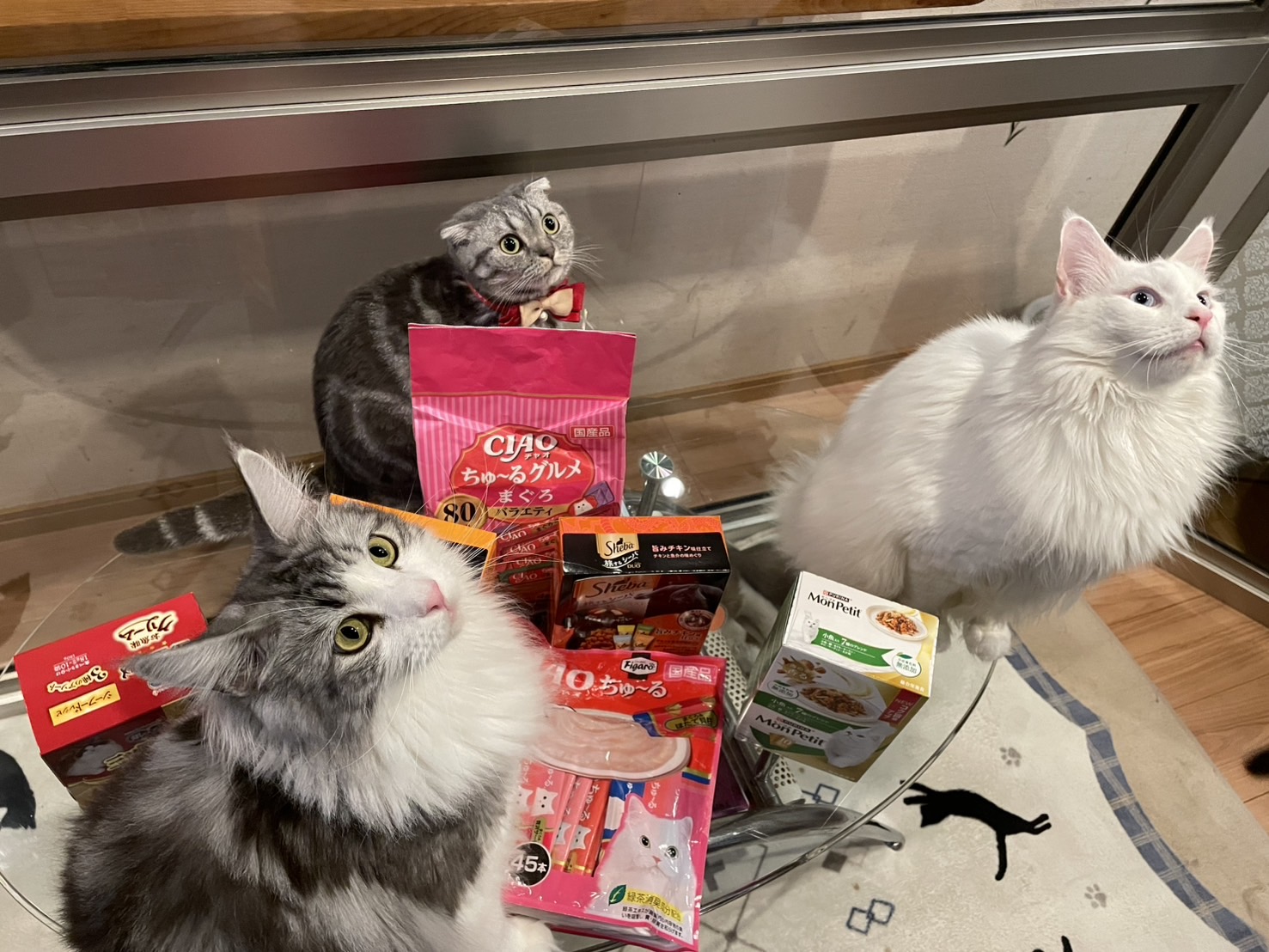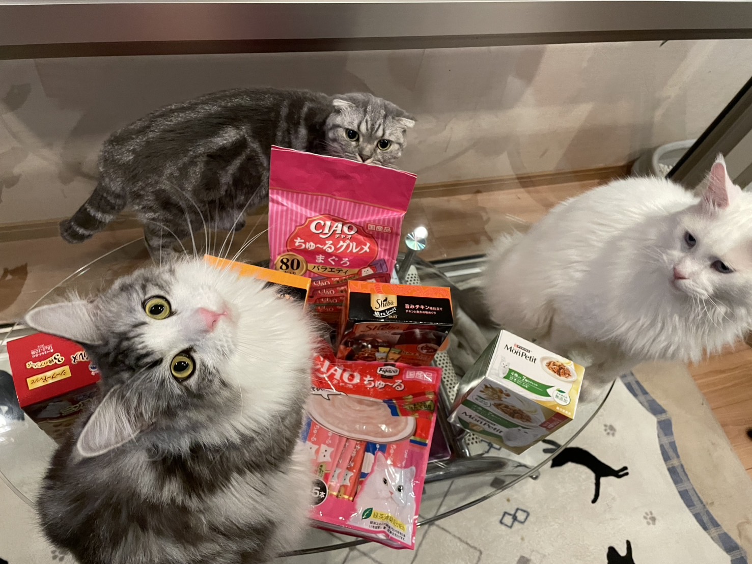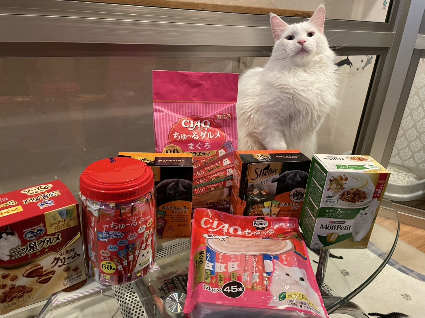 ありがとうございます♫ 2025/10/01 // No Comments 猫ちゃん達大好きなおやつを頂き嬉しいね♫ 袋の音を聞いて集まって来ました。 ゆっくりいただこうね。 http://cafe-manekineko.com/blog/wp-content/uploads/2025/10/1759048831365.mp4 フウガくんはちゅ~るの袋にスリスリ〜♫ いつもありがとうございます♡