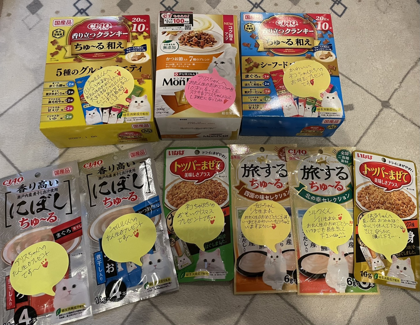ありがとうございます♡ 2026/01/17 // No Comments お誕生日の猫ちゃん達やその他の猫ちゃん達も メッセージ付きのおやつを頂きました(ΦωΦ) 嬉しいね♫ いつもありがとうございます♡ お知らせ 1/17日(土)・18日(日)開店11時〜